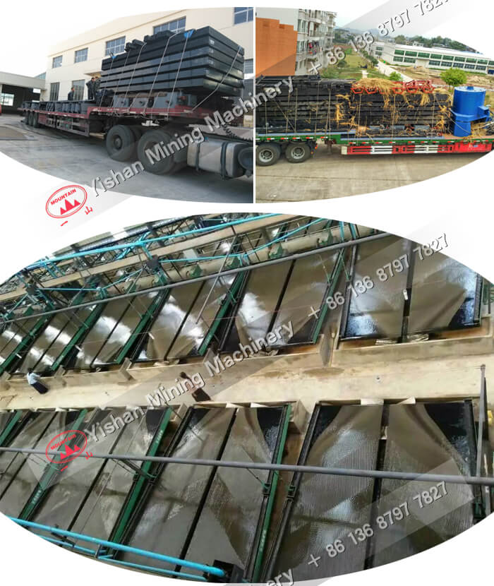 小槽鋼選礦搖床具有富礦比高,選別效率高,看管容易,便于調(diào)節(jié)沖程。在改變橫向坡度和沖程是仍可保持床面運行平衡,彈簧放置在箱體內(nèi),結(jié)構(gòu)緊湊,且能依次得出最終精礦和最終尾礦。